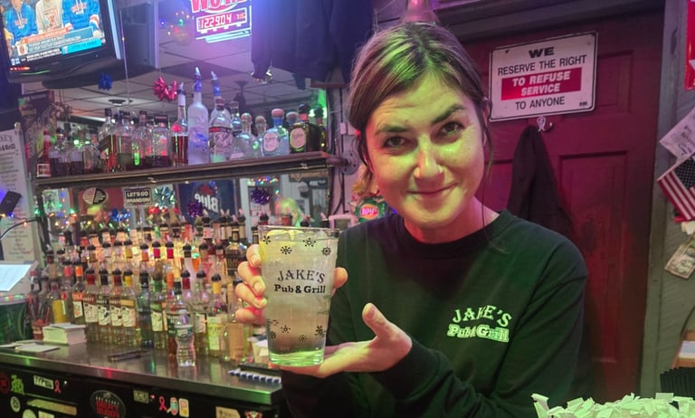 We offer bars custom glasses at no charge, showcasing local business advertisements as part of the service.