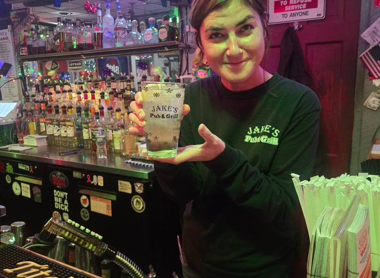 We offer bars custom glasses at no charge, showcasing local business advertisements as part of the service.